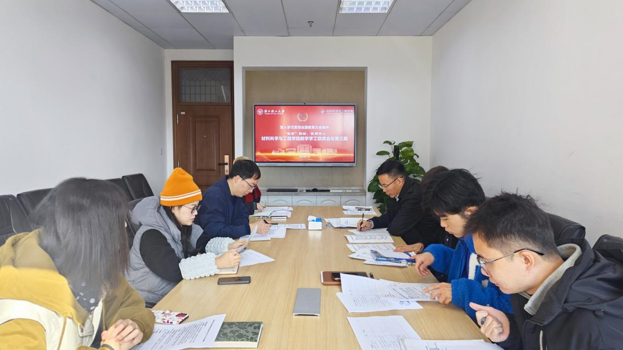 召开学风建设推进工作会暨教学学工联席会第三次会议。学院党委书记仰滢,学院副院长杨叶锋,学院党委副书记、纪委书记周照东,学院高分子材料系主任张明、材料工程系主任金达莱、教授代表姚玉元和王騊、24级本科生班主任、教科办和学工办全体老师参加会议。