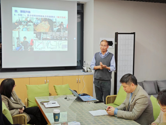会议首先介绍了校内本科教学平台——材料工程实验教学中心的整体规划建设方案。随后,陈建军和董余兵两位老师就综合性课程设计教学内容、教学改革、改革成效等方面作了经验分享。