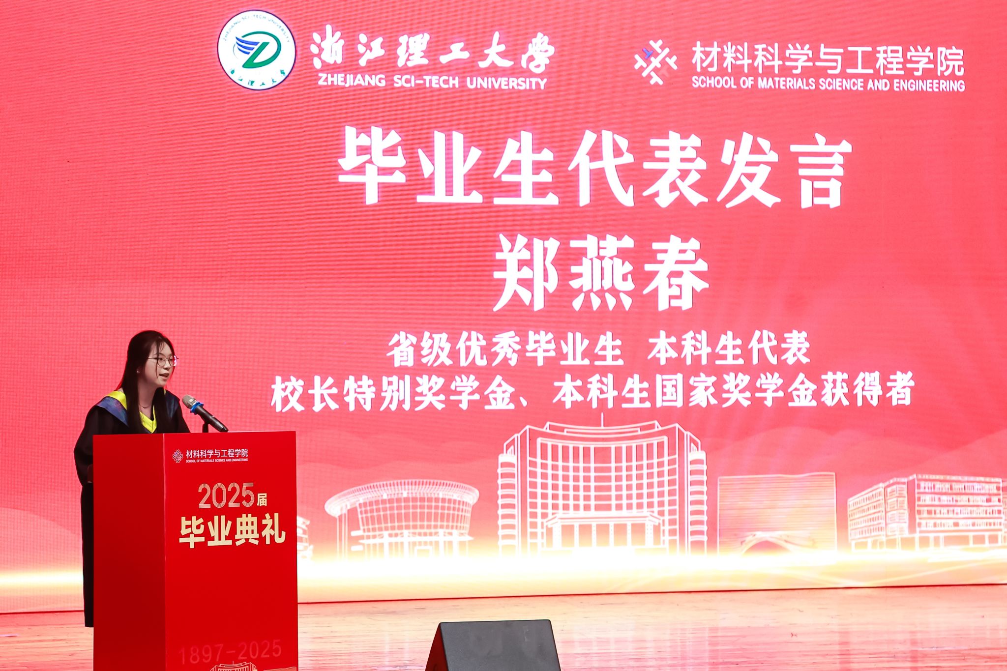张先明代表学院领导班子、全体教师向即将毕业,奔赴美好未来的2025届全体毕业生致以最诚挚的祝贺,并对即将开启人生新征程的毕业生们提出三点希望:一是筑牢信仰之基,勇担时代使命。将个人理想熔铸于民族复兴的时代洪流之中,以昂扬姿态投身中国式现代化建设的伟大实践中。二是赓续奋斗之魂,淬炼实干品格。展现浙理材俊的勇敢担当,摒弃“躺平”“佛系”的消极心态,在奋斗中锤炼本领、在磨砺中增长才干。三是永怀感恩之情,绘就人生新篇。始终保持浙理材俊的自信,懂得珍惜、懂得感恩、懂得回报,用实际行动践行“今天我以理工为荣,明天理工以我为荣”的誓言,奋力书写无愧于时代、无愧于自己的精彩华章。