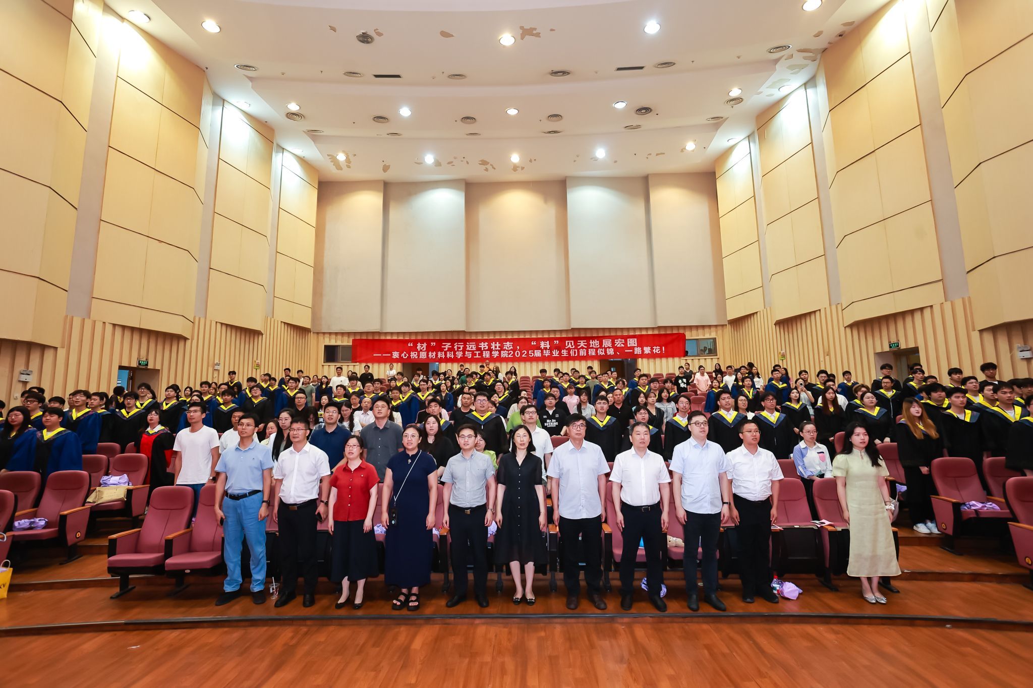 2025届学生毕业典礼暨学士学位授予仪式在学生活动中心小剧场隆重举行。78制丝专业校友、金富春集团董事长周文峰,学院党委书记仰滢,学院院长张先明、副院长朱曜峰、付飞亚、陈世昌,学位委员会委员高俊阔、王秉,材料工程系主任金达莱、高分子材料系主任张明,各毕业班班主任、辅导员和部分毕业生亲友代表出席典礼。毕业典礼由学院党委副书记、纪委书记魏莉莉主持。