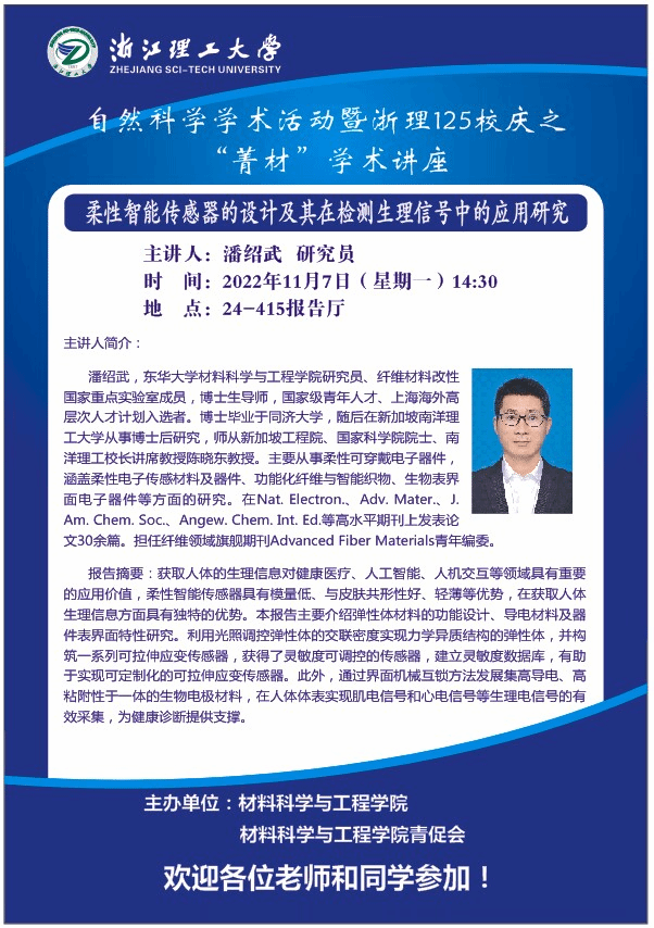 学术讲座【39】:柔性智能传感器的设计及其在检测生理信号中的应用研究