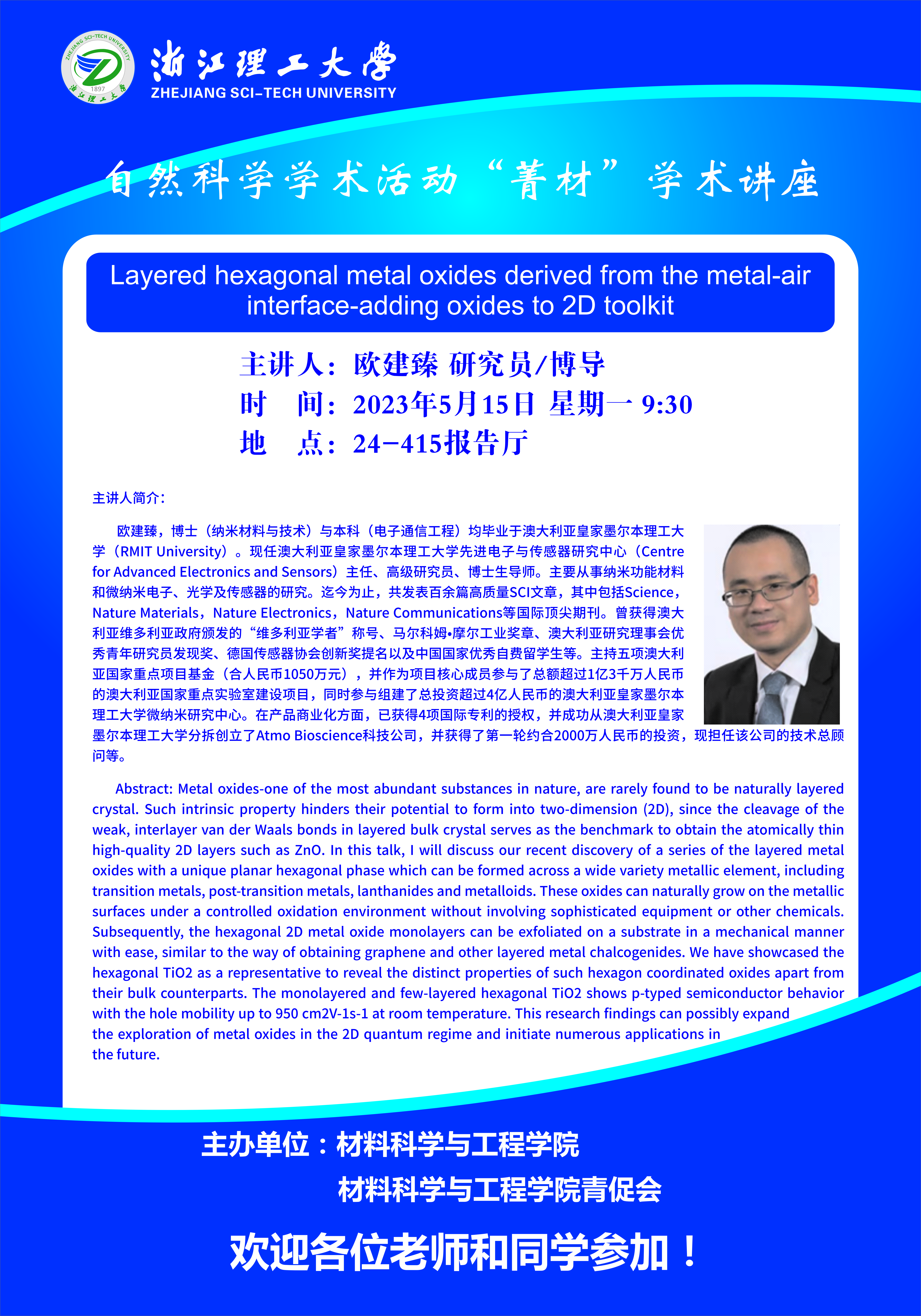 学术讲座 当前位置: 无码a片 > 学术讲座 > 正文 学术讲座【55】:Layered hexagonal metal oxides derived from the metal-air interface-adding oxides to 2D toolkit 作者:时间:2023-05-14浏览次数: