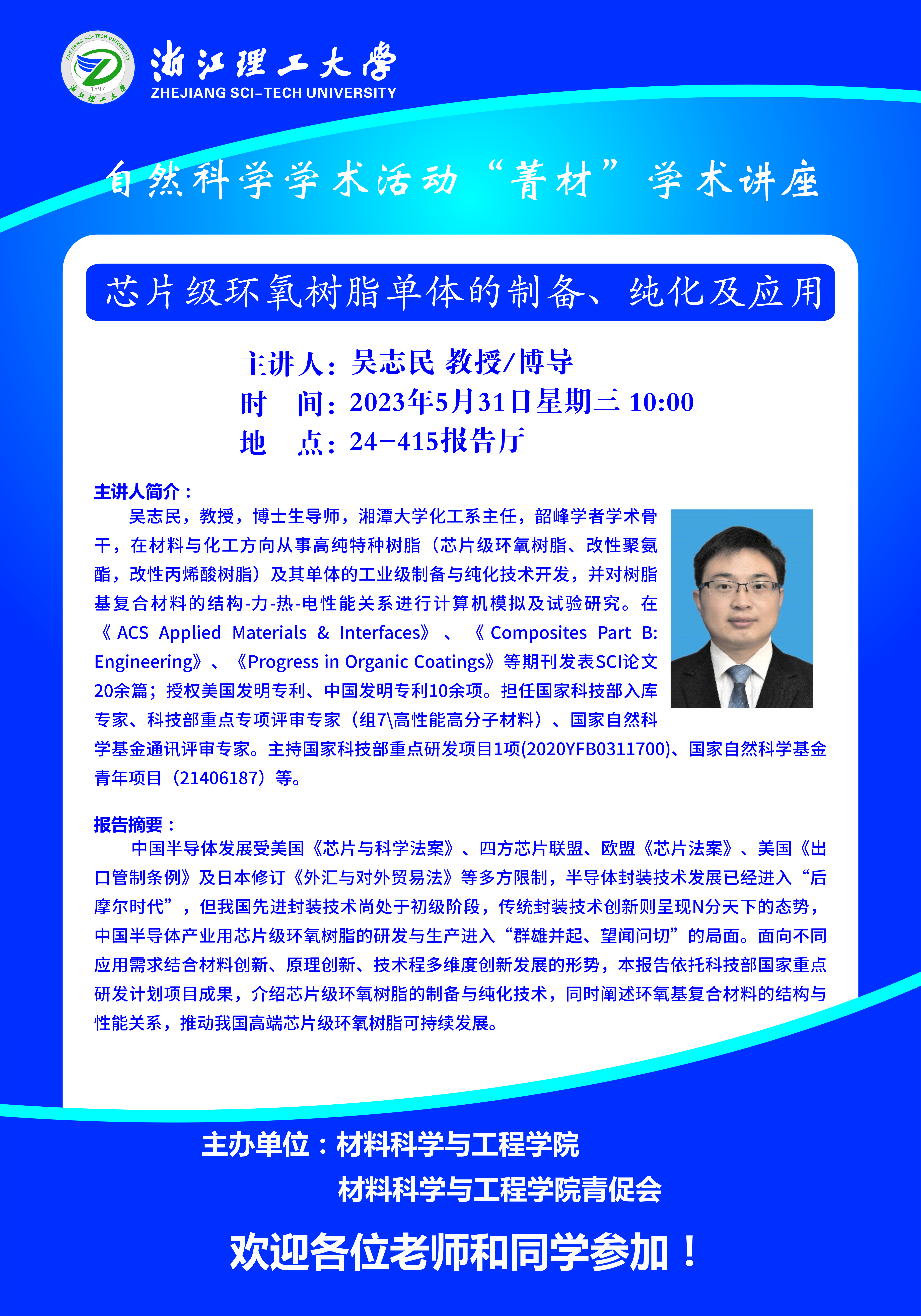 学术讲座【56】:芯片级环氧树脂单体的制备、纯化及应用