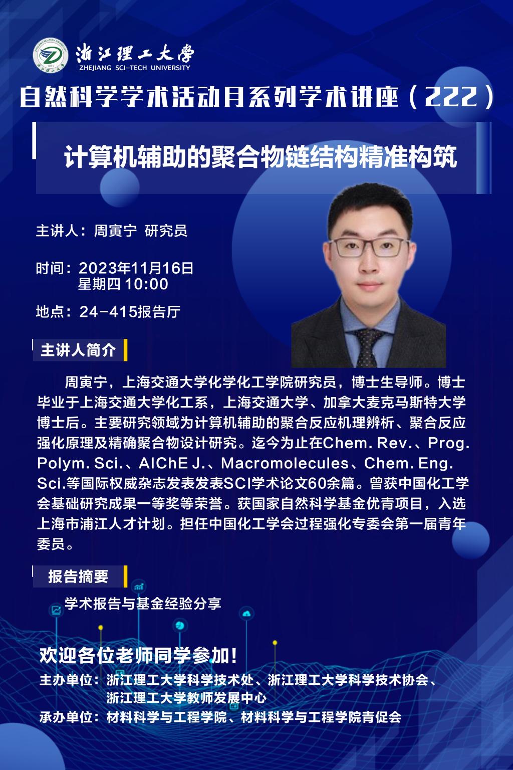 学术讲座【65】:计算机辅助的聚合物链结构精准构筑