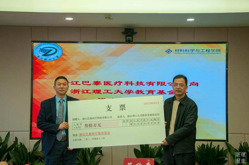 的合作,也是钱塘区经发科技局加强企业和高校之间合作交流的重要使命,他希望通过“巴泰医疗教育基金”的设立,强化校企紧密合作,提高人才培养质量,为学生顺利步入社会提前打好基础,为社会创造更多的价值。
