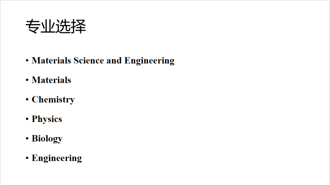 甚至材料专业,所以在检索感兴趣的项目的时候,大家可以把关键词范围延伸,不要仅仅局限于材料,像化学、物理、生物甚至是工学院都有可能涉及你感兴趣的研究方向。