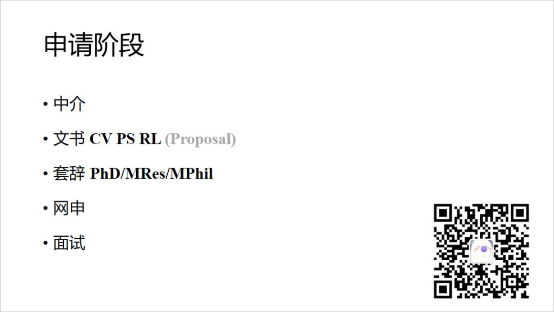 另外,对于研究型硕士和博士的申请,还有一项必备的文书材料proposal,也就是研究计划。这是需要你和你感兴趣的教授取得联系,并且得到对方的招生意向之后,讨论并完成的文书材料。而在此之前,你需要进行套辞。这个操作就是给你感兴趣的教授发邮件,阐明你的申请意向以及对他所研究的课题的认知及感兴趣程度。因为研究型的学位,主要是跟着导师进行课题研究,导师的认可是你申请成功的第一步,也是最关键的一步。