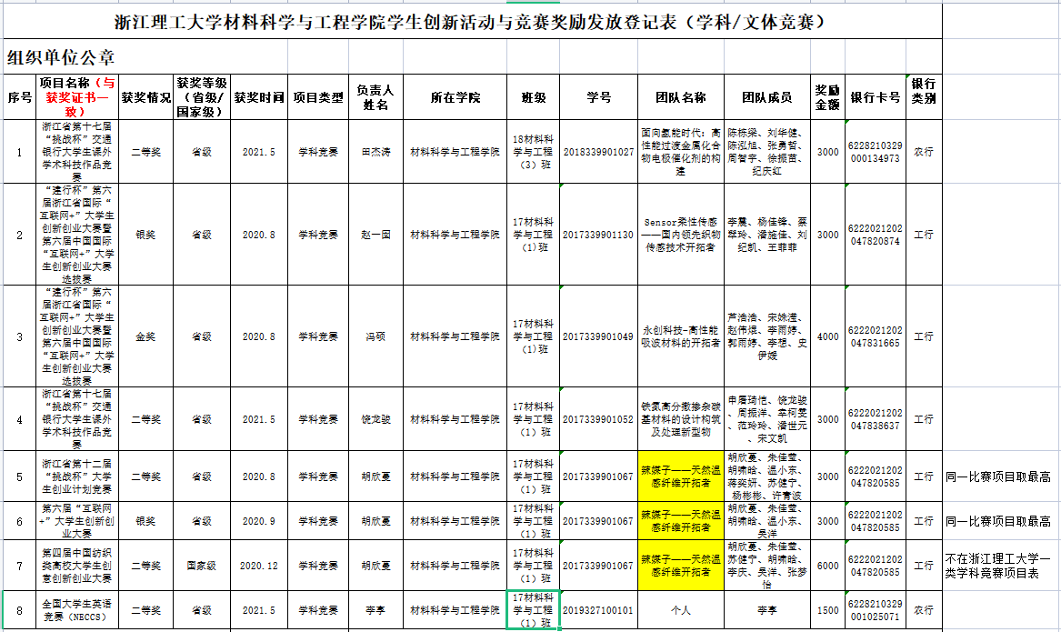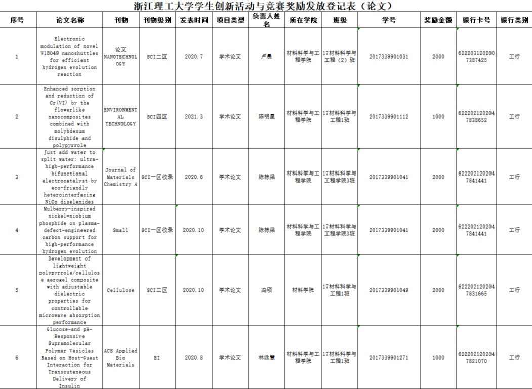 为进一步加强学院学风建设,激发广大学生参加创新活动与竞赛及出国交流学习的主动性和积极性,提高学生的创新能力,根据《无码a片 学风促进实施办法》(材料学〔2020〕3号),在学院本科生范围内进行申报无码a片 学生创新活动与竞赛奖励。经过前期个人申报、学院初审,现将学生申报结果公示如下: