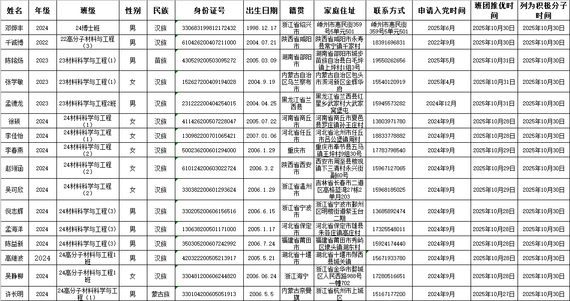 经各团支部“推优”、学院团委审核以及各党支部委员会讨论研究决定,确定邓烨丰等16位同志为入党积极分子,现将名单公示如下: