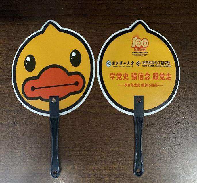 20材料2团支部的同学们想借着展开团日活动的机会,给夏日守在马路边和保安室的保安们送上我们的小小的谢意。2班的团支书和副班长准备了矿泉水,定制学党史小扇子,以及感谢的话语,并且安排同学们将这些小小的礼物送给保安们。