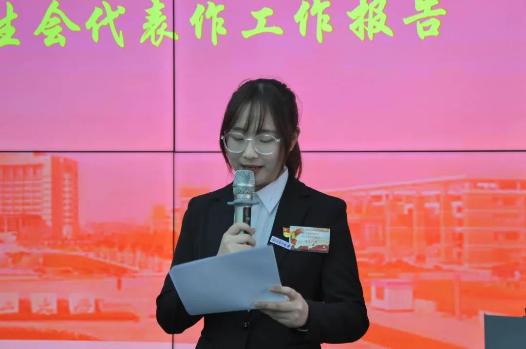 学生会代理主席吴冰瑶对学生会一年的工作进行了回顾与总结,介绍了学生队伍建设的规范和完善,阐述了各类文体活动的开展举办,并表达了院学生会对未来的思考及展望。