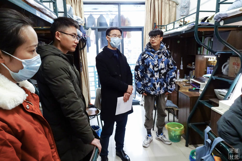 走访过程中,学院老师重点关注2020级新生和2017级毕业班寝室,给学生们送去新年祝福的同时针对考研、就业、未来规划、寝室氛围等进行了讨论交流,要求同学们在新的学期中要重视寝室安全和寝室卫生,要努力做到学业学习和身体素质提高两不误,转专业同学要做好个人生涯规划,考研同学要调整好心态,专心致志地准备复试,就业同学要积极投递简历。
