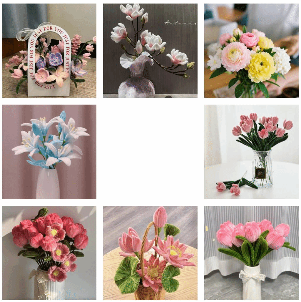 活动提供材料:材料花材工具,扭扭棒、剪刀、包装纸/丝带