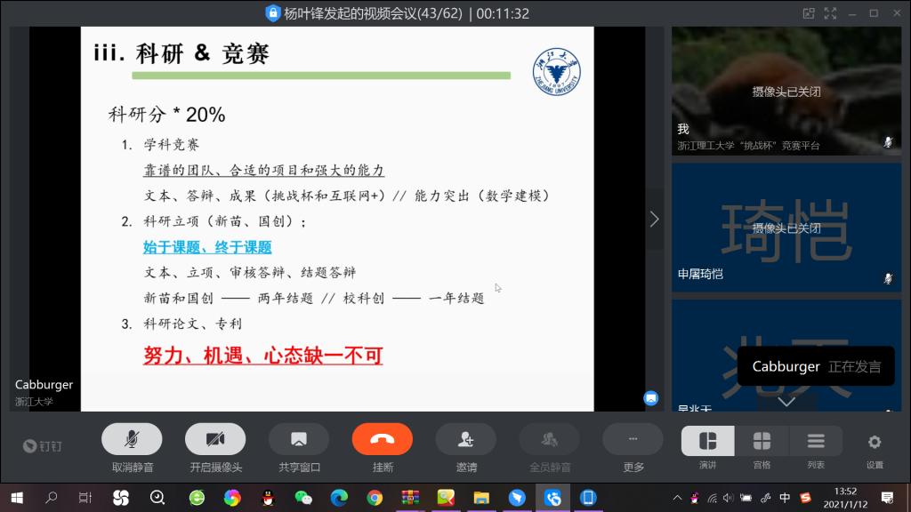 在钉钉平台举行线上求学深造专题讲座。学院副院长杨叶锋、学院党委副书记周照东、2019届材料科学与工程校友单心怡、20120届材料科学与工程校友蔡浩然和学院来自2018级、2019级有志考研的60余名同学参与,讲座由杨叶锋老师主持。