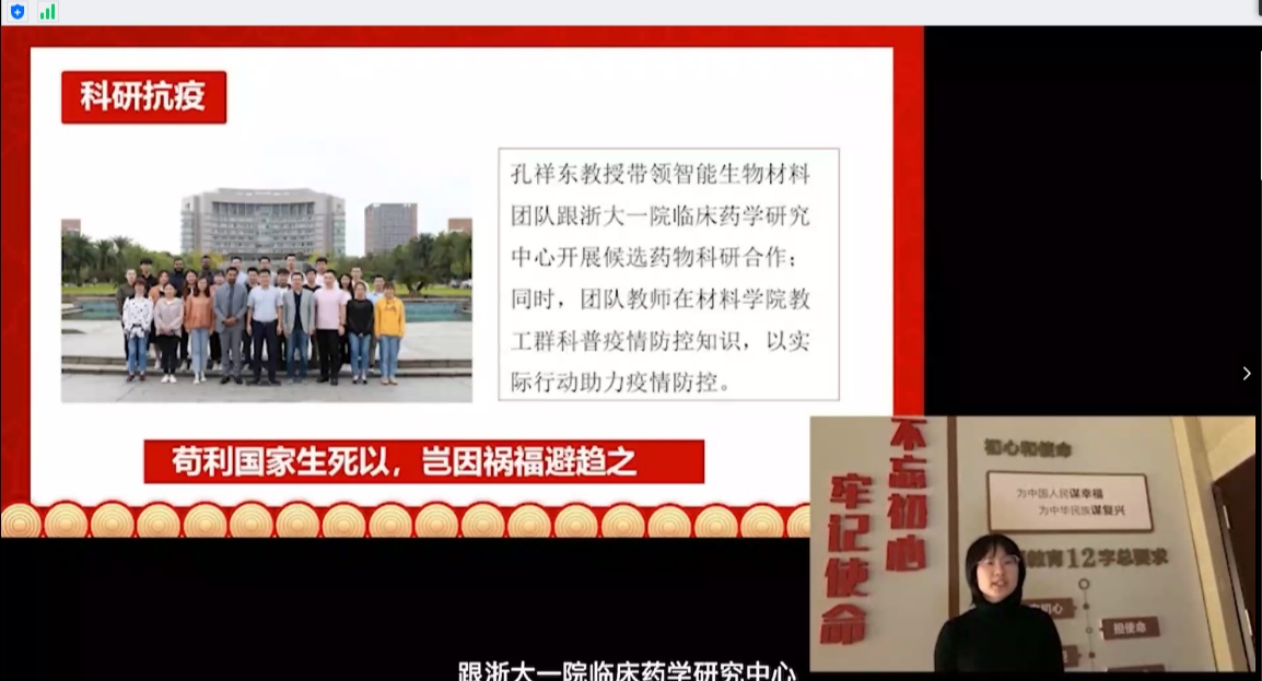 举行了第一次线上团课暨思政微课大赛作品评比。参与本次团课的有四位学院辅导员老师和众多团学骨干。本次团课主要围绕九位同学和辅导员老师的思政微课作品,向大家展示材料人在疫情来临时的所思所想与使命担当。