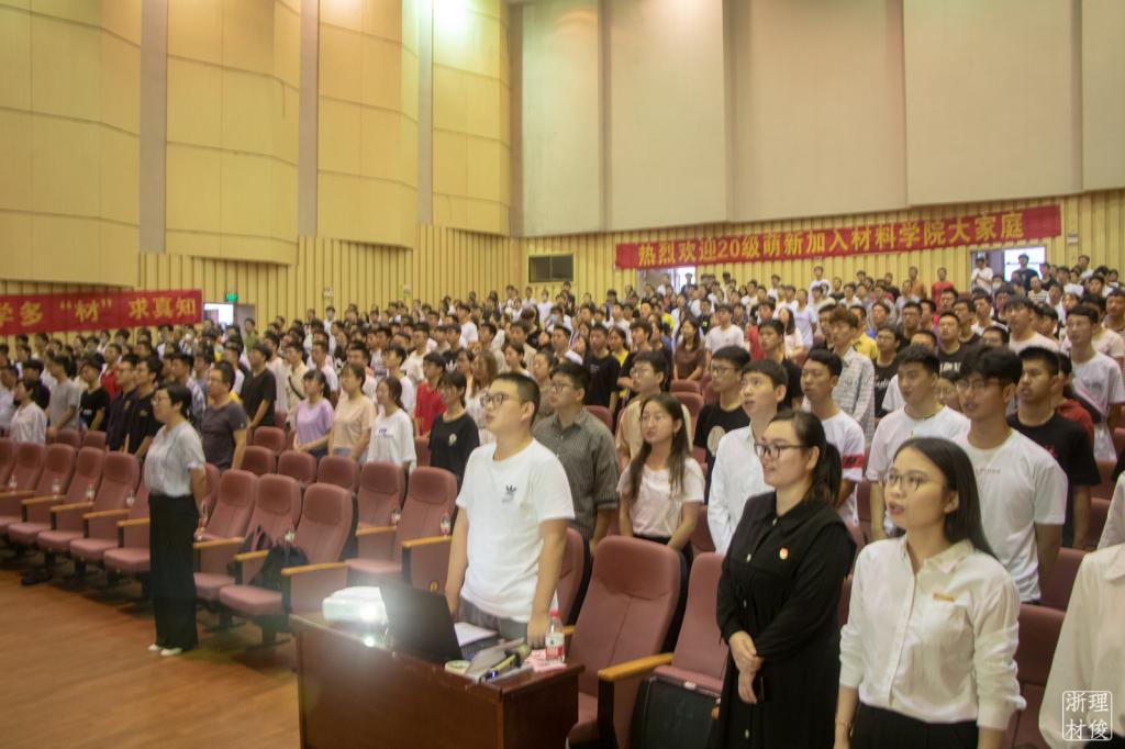 在校友寄语环节,全场一起聆听了往届毕业生对学弟学妹的诚挚祝福。天南海北,割舍不断的校友情,感动了在场的每一位浙理材料人。2020级新同学,将带着这些谏言、祝福和感动砥砺前行!