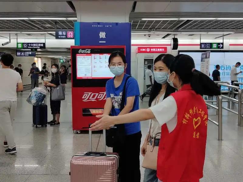 在学校和生活区的报道通道、地铁站都设有接待点。学院各党支部组织党员们积极参与志愿服务,志愿者们都统一穿上学院志愿服、举着kt板,脸上洋溢的兴奋与热情都献给每一个新生。