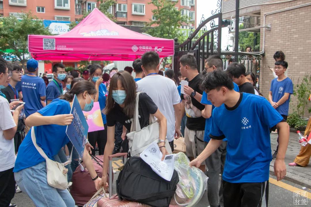 的”,几个蓝色的身影便立即奔向你满箱行李,满载着忧与爱一双双有力的手,暂时接过这份沉甸,只为让每一份爱与期待安心探索的眼神,满是好奇与期待学长与学姐们积极热情与新生们交谈,希望能减轻每一份陌生感、紧张感。再苦再累,心中仍然是喜悦的。轻声的交谈,爽朗的笑脸,将两个人的距离拉近。这是每个志愿者最好的礼物。报道之路,回家之路,浙理材俊志愿者一直都在。
