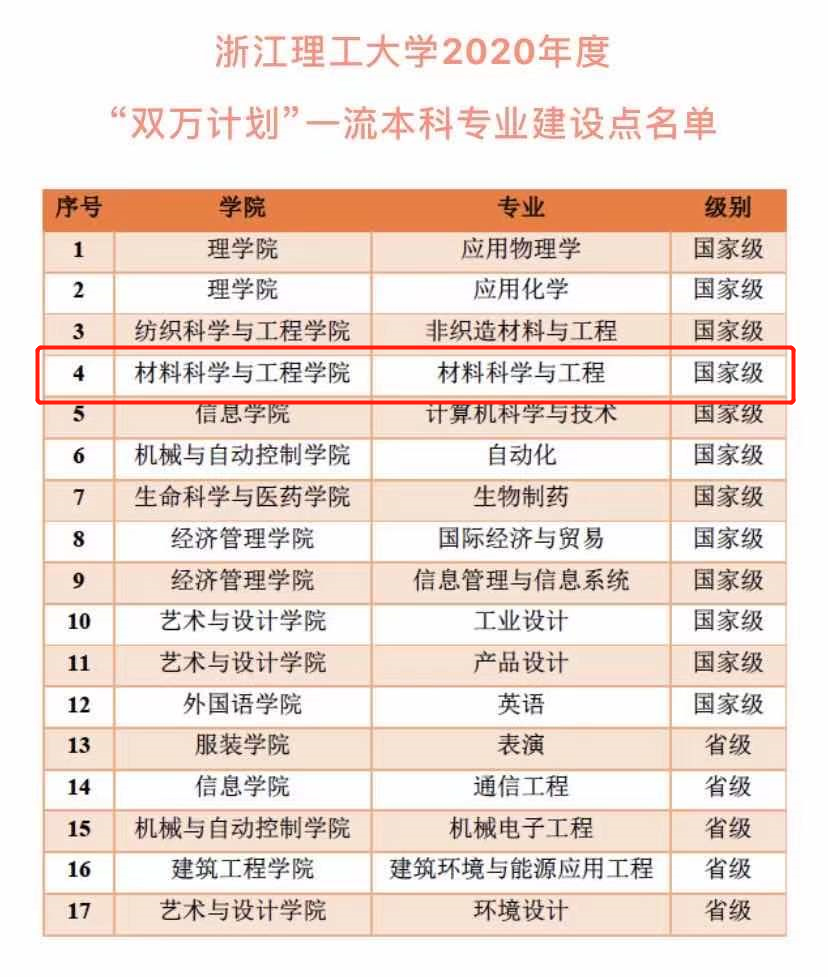 材料科学与工程专业成功入选国家级一流本科专业建设点。