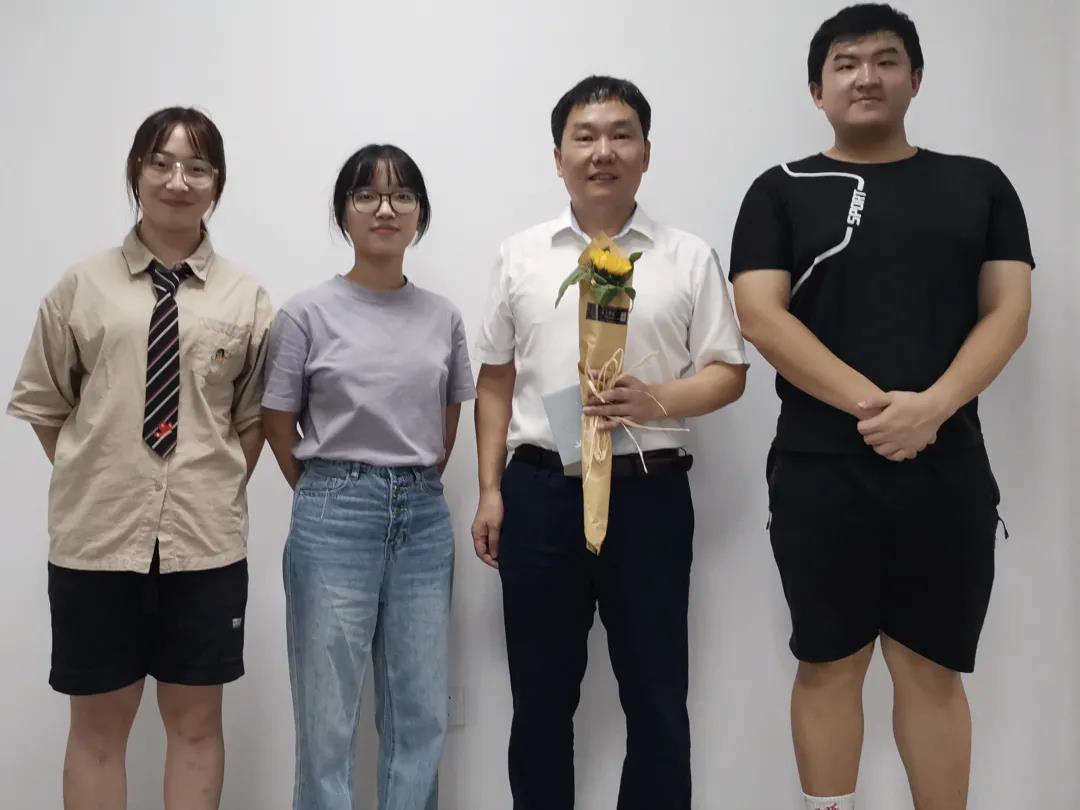 学院学生会主席团成员代表学生会全体成员向学院行政区老师们送上了别具一格的教师节礼物——一只向日葵,一盆绿植,一封手写的祝福。
