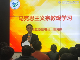 会上,周照东老师带领全体班团进行了马克思主义宗教观的专题学习,导读了宗教与教育的相关法律法规,着重强调教育和宗教相分离原则、不得在校园中参与宗教性质的传教活动、严禁非法聚集和严禁参加各种非法宗教活动、注意甄别各类社会活动的性质等,要求各班级学生干部关心同学,重点关注家庭有宗教信仰的学生情况,并通过寝室宣讲、班会等,务必向每个同学传达学习内容和要求。