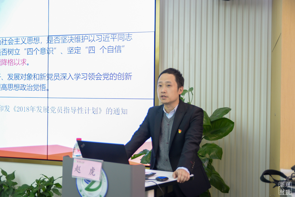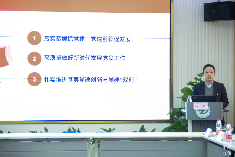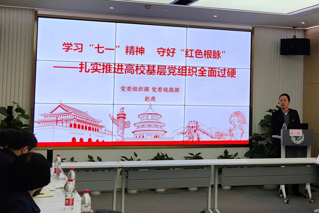 会上,赵虎老师以“学习‘七一’讲话 守好‘红色根脉’—扎实推进高校基层党组织全面过硬”为主题,从“夯实基层抓党建,党建引领促发展”、“高质量做好新时代发展党员工作”、“扎实推进基层党建创新与党建‘双创’”三个部分进行培训分享。