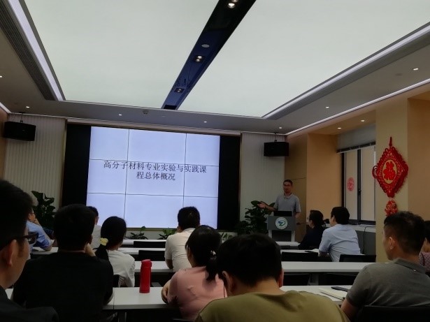 随后,董余兵、陈世昌两位老师先后围绕高分子专业发展、本科生毕业事务、实验实践课程建设等内容做报告,陈世昌并讲授了“专业发展与教师的初心使命”的专题党课。