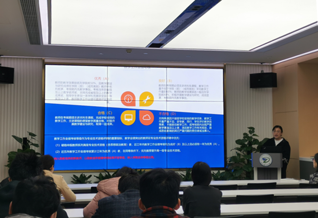 本场教学培训旨在让青年教师对于教学程序和教学规范有直观深入的了解,同时也对教学工作量的指标分布和教学业绩考核标准有清晰的认识。张明老师为在场的青年教师分享了教学基本程序、教学规范、教学工作量的算法和教学业绩考核的标准。她还为大家介绍了与教学相关的各项教学改革项目、赛事、成果和荣誉,鼓励在场所有青年教师积极投入到教学工作中去。